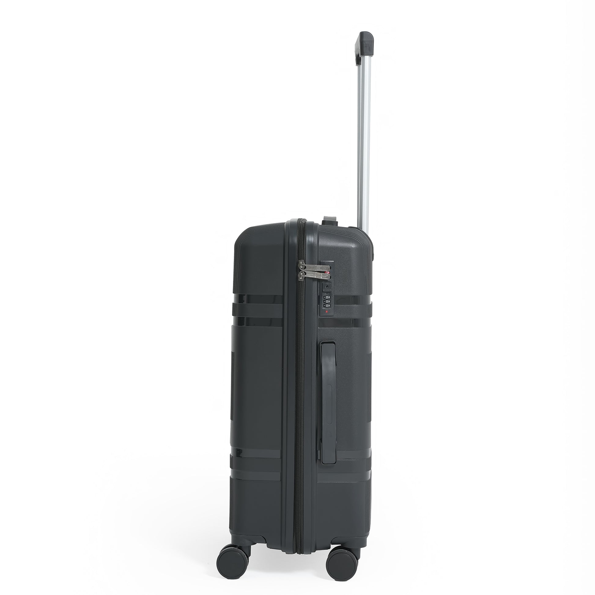 سافر بأناقة وأمان مع مجموعة حقائب السفر الفاخرة المصنوعة من مادة البولي بروبيلين باللون الأسود والمكونة من 3 قطع.