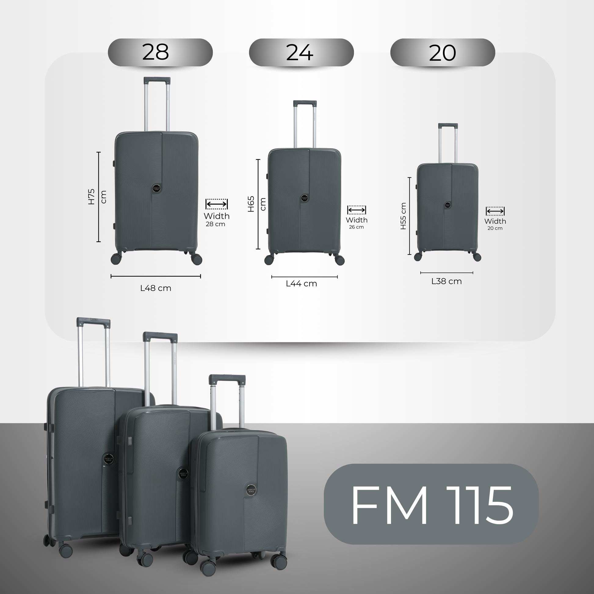 قم بتطوير تجربة السفر الخاصة بك مع مجموعة حقائب السفر المصنوعة من مادة البولي بروبيلين الرمادية المكونة من 3 قطع والمصممة للمسافرين العصريين الذين يطلبون الأناقة والأمان والمتانة.