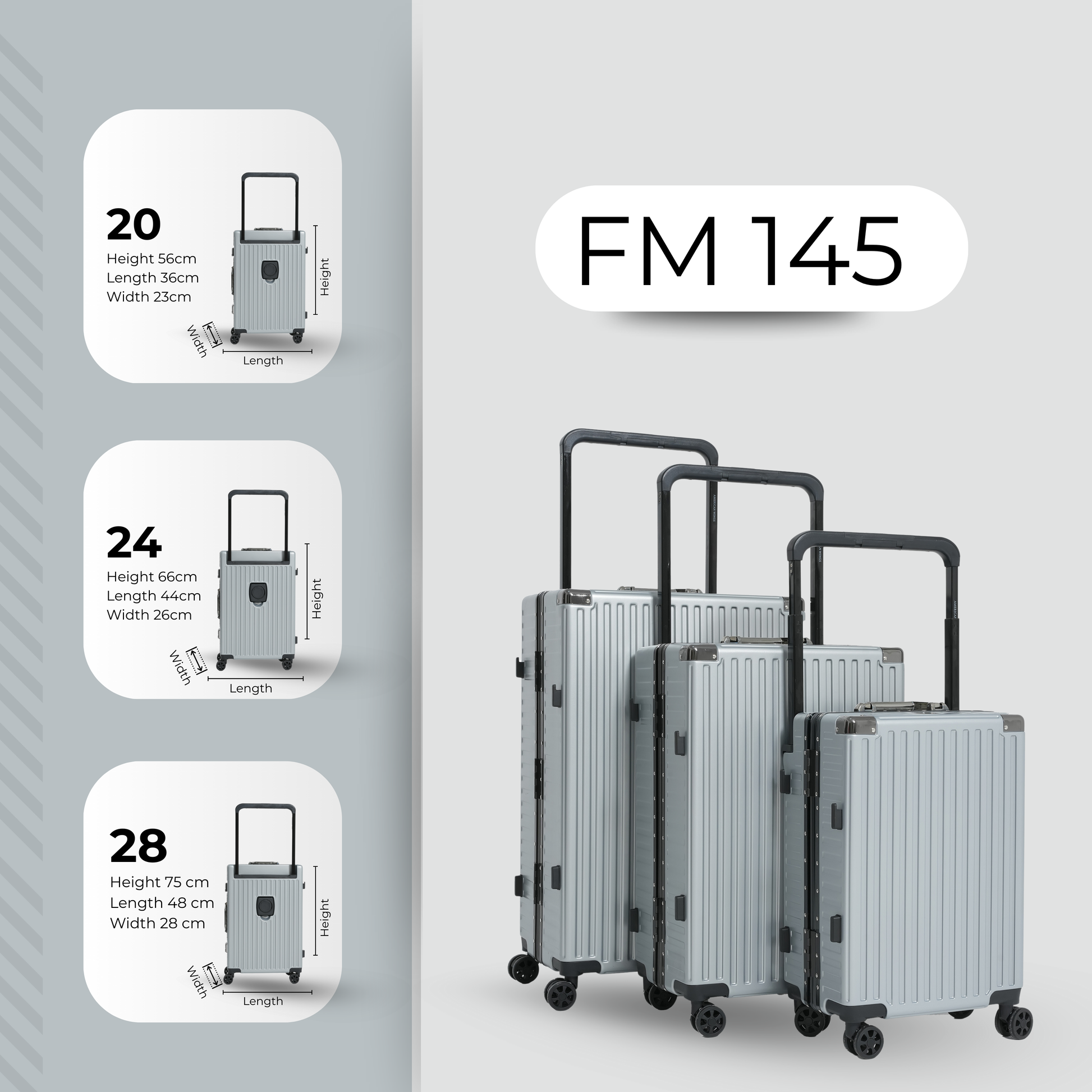 سافر بأناقة مع مجموعة الأمتعة الفضية المكونة من 3 قطع ذات الإطار الألومنيوم، المصممة خصيصًا للمسافرين الذين يطلبون القوة والأناقة والراحة في كل رحلة.