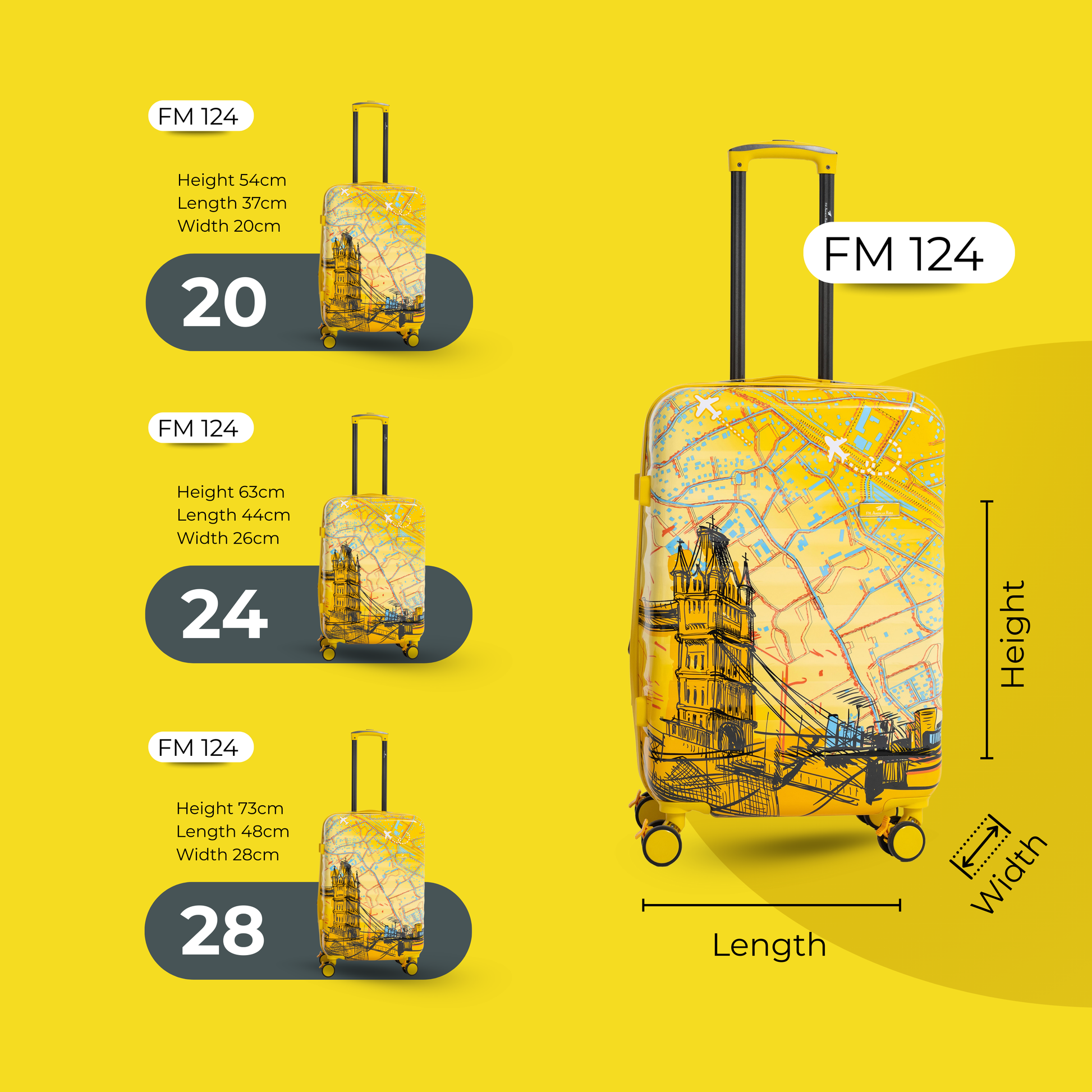- مجموعة من 3 أحجام - صغير 20 بوصة، متوسط 24 بوصة، كبير 28 بوصة